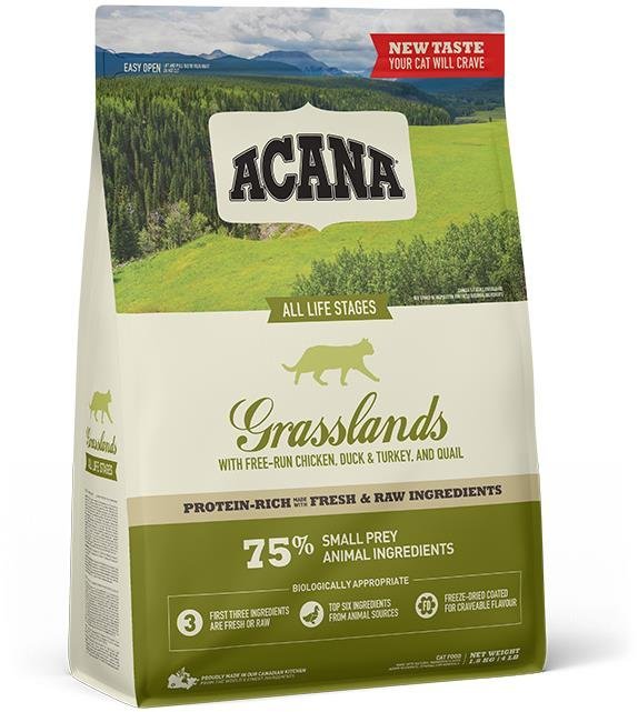 Acana Cat Grasslands Grain-free 340 g je prémiové krmivo navržené pro kočky všech věkových kategorií, které nabízí řadu zdravotních výhod díky svému pečlivě vybranému složení.