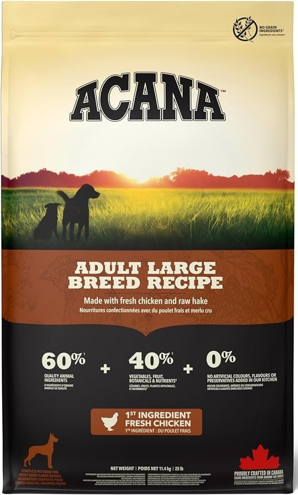 Celkově je Acana Heritage Adult Large Breed 11,4 kg vyvážené krmivo, které splňuje doporučené nutriční hodnoty pro psy velkých plemen a nabízí řadu zdravotních výhod.