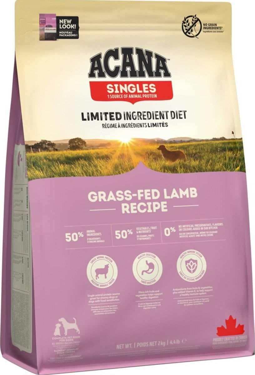 Acana Singles Grass-Fed Lamb je jednoproteinové krmivo ideální pro psy s citlivým trávením nebo alergiemi. Díky vysokému podílu čerstvého jehněčího a přírodním složkám podporuje zdravou srst, kůži, trávení a celkovou vitalitu vašeho mazlíčka.