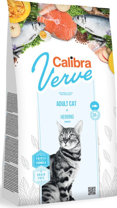 Calibra Cat Verve Grain Free Adult Herring 3,5kg je kompletní bezobilné krmivo navržené pro dospělé kočky. Díky vysokému podílu kvalitních rybích bílkovin a přidaným funkčním složkám podporuje optimální zdraví, vitalitu a dlouhodobou kondici vašeho mazlíčka. Níže uvádím hlavní přínosy na základě složení.