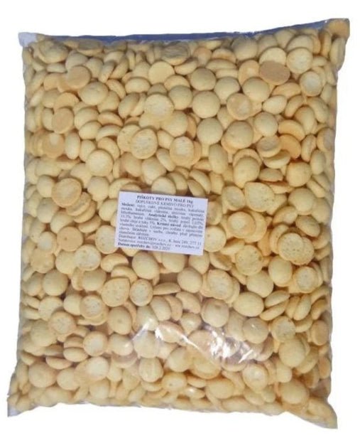 Piškoty MINI pro psy 1 kg jsou chutným pamlskem ideálním k výcviku nebo jako občasná odměna. Díky obsahu vajec a doplňkových surovin nabízejí určité nutriční benefity, avšak nejsou určeny jako plnohodnotná součást jídelníčku.