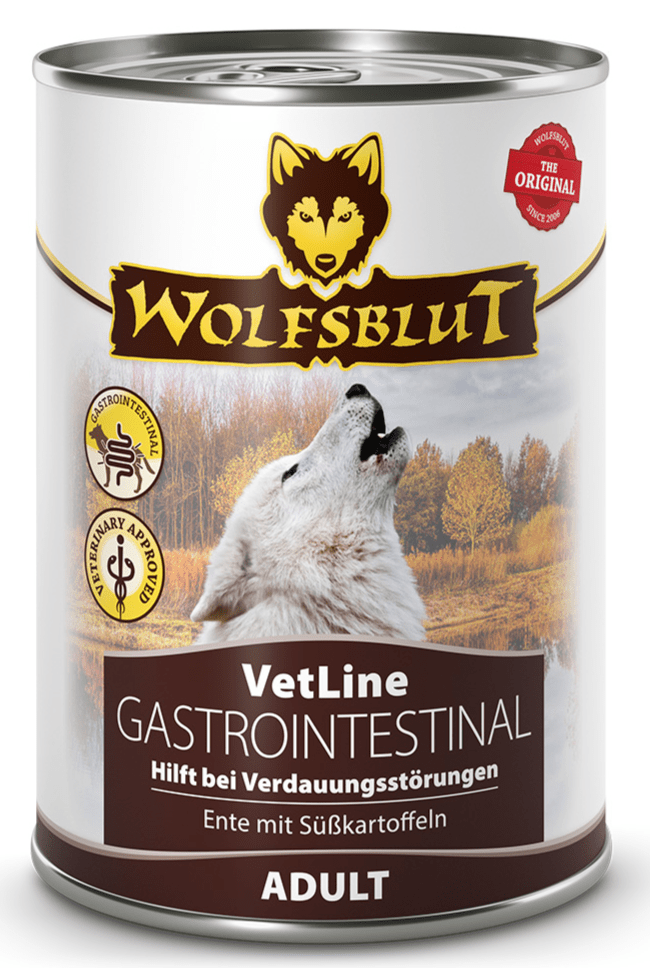 Wolfsblut Dog VetLine Gastrointestinal konz. 395 g je veterinární dieta určená pro psy trpící akutními nebo chronickými poruchami trávení. Díky vysoké stravitelnosti, obsahu šetrných surovin a funkčních složek podporuje regeneraci trávicího traktu, stabilizaci střevní mikroflóry a celkové zklidnění trávicího systému.