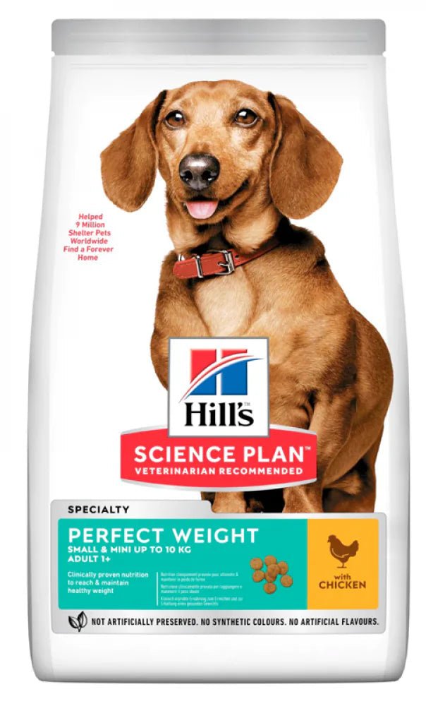 Produkt Hill's Science Plan Perfect Weight Adult Small Chicken 6kg je speciálně navržen pro psy menších plemen, kteří potřebují udržet optimální váhu nebo redukovat tělesnou hmotnost.