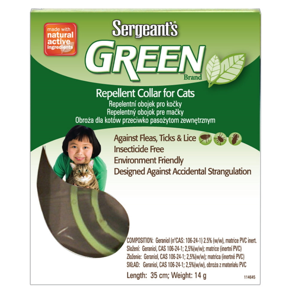 Sergeanťs Green obojek pro kočky 35cm 1ks je efektivní ochranný prostředek proti vnějším parazitům. Je speciálně navržen pro kočky, aby poskytoval dlouhodobou ochranu před blechami a klíšťaty.