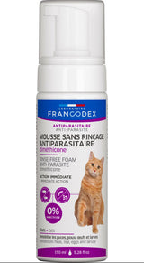 Francodex Bezoplachová pěna s dimethiconem pro kočky 150 ml je antiparazitní přípravek s mechanickým účinkem, který rychle znehybňuje blechy, vši, jejich larvy a vajíčka bez použití chemických insekticidů.