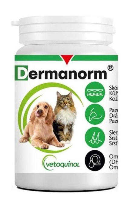 - Podpora zdravé srsti a pokožky: Dermanorm kapsle jsou speciálně vyvinuty pro psy a kočky, aby podporovaly zdravou pokožku a lesklou srst, díky obsahu esenciálních mastných kyselin z olejů, jako jsou brutnákový olej a rybí tuk.