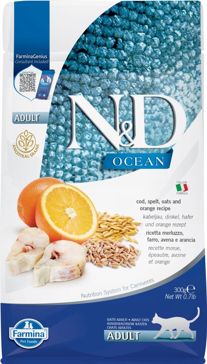 N&D OCEAN CAT LG Adult Codfish & Orange 300g - VETSTOR 🐾