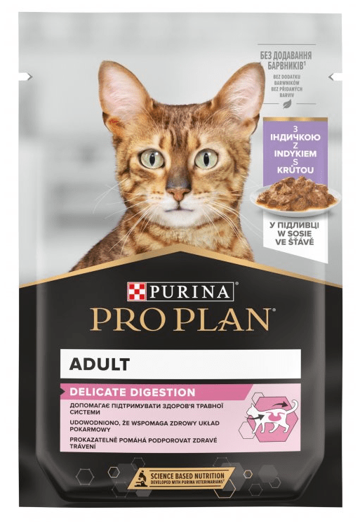 ProPlan Cat kapsičky Delicate s krůtou (26x85g) jsou navrženy pro dospělé kočky s citlivým zažíváním. Obsahují 14 % krůtího masa, což poskytuje kvalitní zdroj živočišných bílkovin, důležitých pro udržení svalové hmoty a podporu celkového zdraví.
