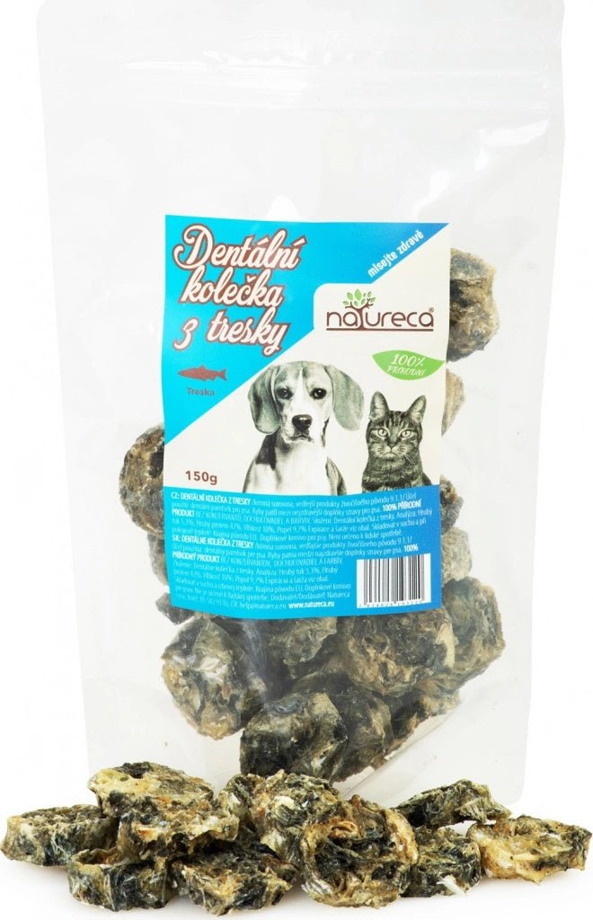 NATURECA dentální kolečka z tresky 150 g jsou určena jako chutná odměna pro podporu dentální hygieny vašeho mazlíčka.