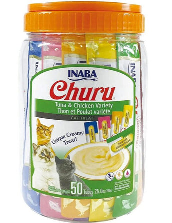 Churu Cat Tuna & Chicken Varieties 50P je lahodná kombinace tuňáka a kuřecího masa, která nabízí vaší kočce vynikající chuťový zážitek a zároveň podporuje její zdraví. Tento produkt je ideální pro vybíravé jedlíky a jako doplněk k hlavnímu krmivu.