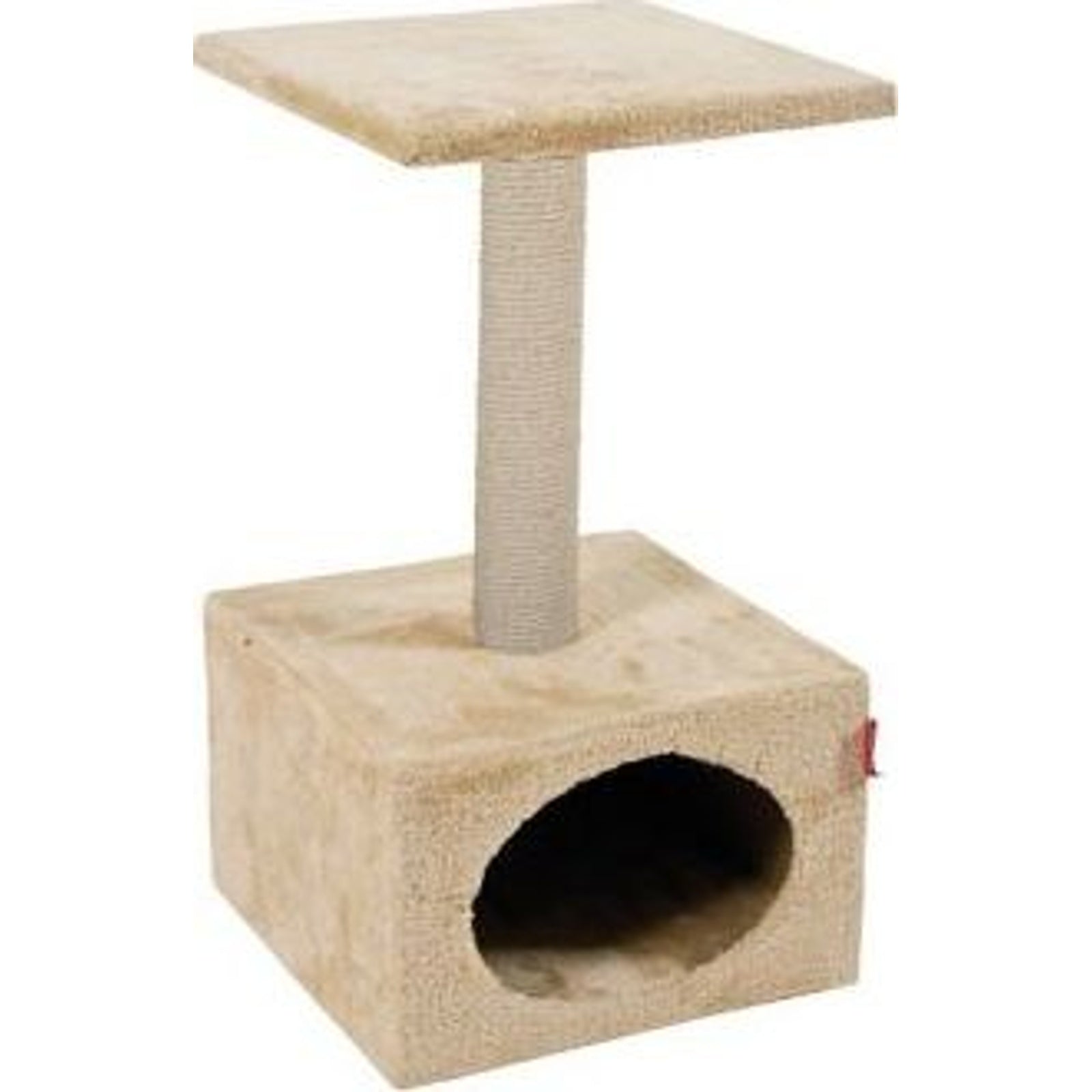Kompaktní béžové škrabadlo podporuje přirozené chování koček, umožňuje jim škrábat, protahovat se a relaxovat, čímž chrání nábytek.