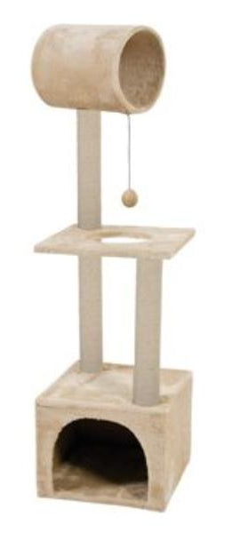 Škrabadlo se třemi sloupky v béžové barvě nabízí více možností pro škrábání a lezení, čímž podporuje aktivitu kočky a její duševní pohodu.