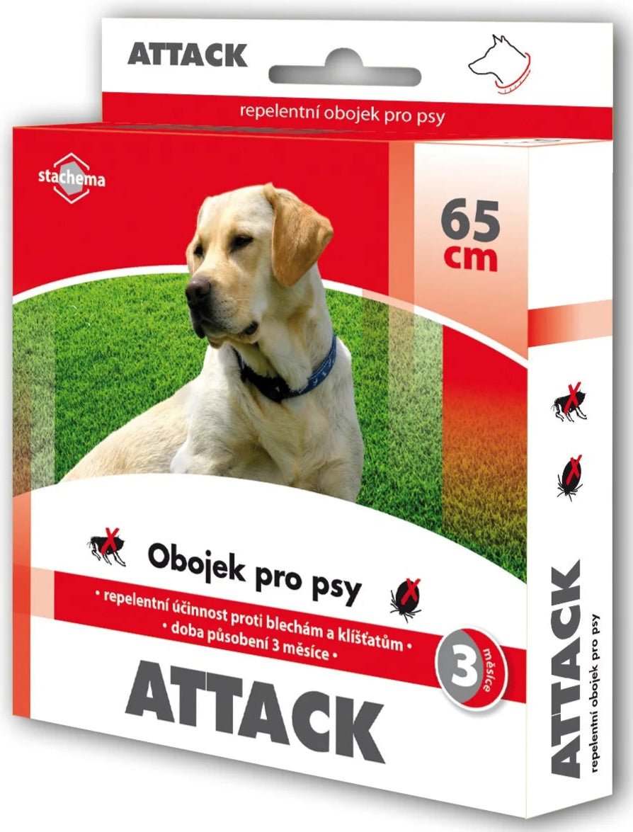 Attack 65 cm – antiparazitární obojek pro psy poskytuje efektivní ochranu proti klíšťatům a blechám po dobu až 3 měsíců. Tento obojek s výraznou repelentní účinností je šetrný k vašemu psu i k životnímu prostředí.