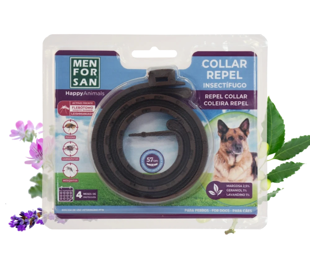Pomáhá chránit psa před blechami, klíšťaty i komáry přirozenou cestou. Je šetrný, dobře snášený a díky délce 57 cm se pohodlně přizpůsobí bez omezení pohybu.