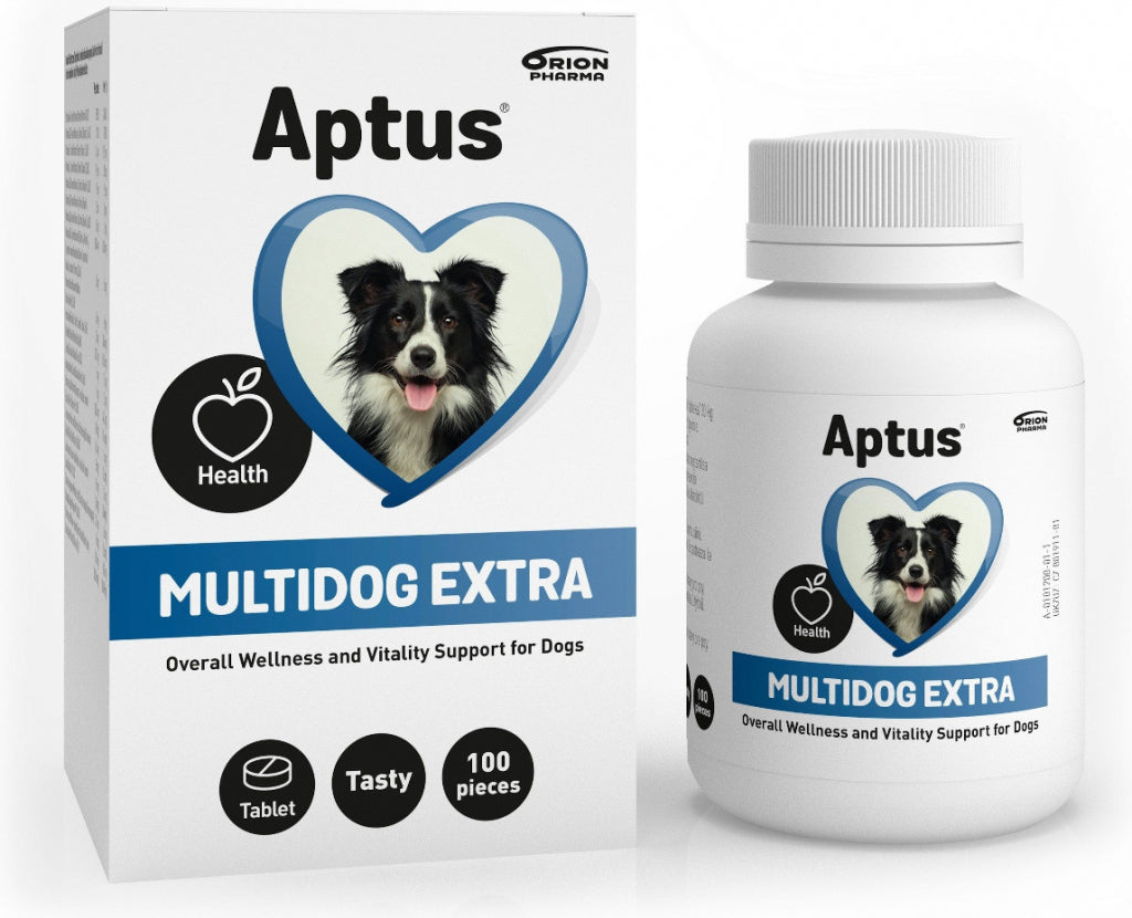 Aptus Multidog Extra VET je doplněk stravy pro psy, který obsahuje esenciální vitamíny a minerály na podporu zdraví, vitality a správného fungování imunitního systému. Tento produkt je vhodný pro psy všech věkových kategorií, zejména pro psy se zvýšenou potřebou živin.