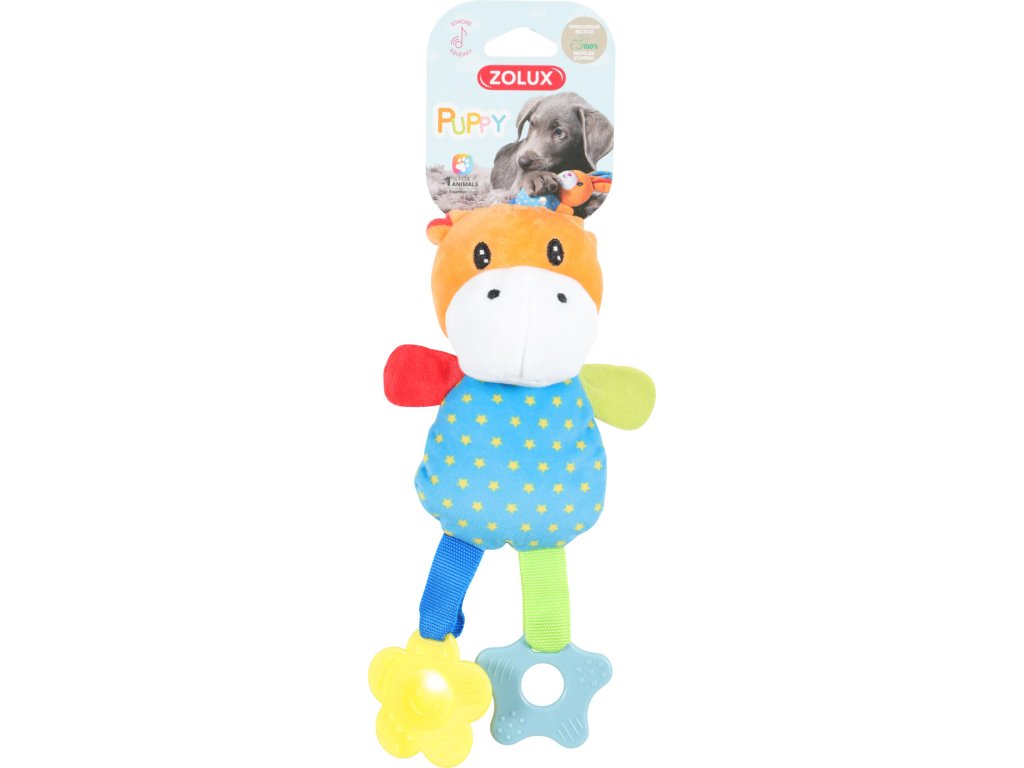 Hračka je vyrobena z bezpečného a měkkého plyše, ideální pro štěňata a jejich potřebu kousat a mazlit se.