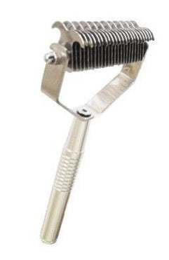 Profesionální vyčesávací hrablo pro malé psy a kočky s dvojitou hlavicí pro efektivní odstranění podsady a uvolněných chlupů. Podporuje zdraví kůže, zlepšuje cirkulaci a přispívá k lesklé srsti bez nadměrného línání.