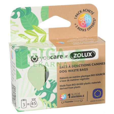 Sáčky na psí exkrementy 3x15ks Zolux jsou ideálním doplňkem pro každodenní procházky s vaším psem, zajišťující hygienu a čistotu vašeho okolí. V případě dalších dotazů si neváhejte objednat konzultace prostřednictvím karty mazlíčka.