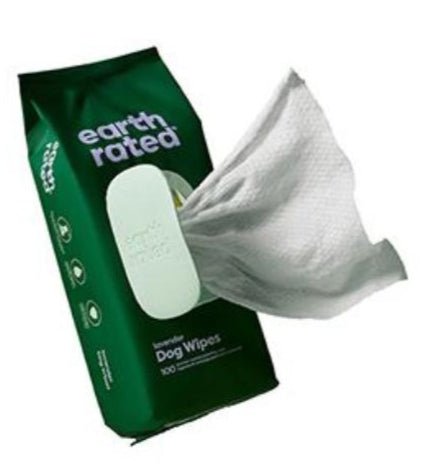 Jemné čistící ubrousky pro psy s heřmánkem, aloe vera, bambuckým máslem a vůní levandule. S ubrousky Earth Rated udržíte zvířecí packy, srst  i vaši domácnost v čistotě, nehledě na počasí. Snadno a ekologicky. Vhodné i pro intimní partie.