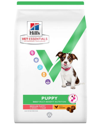 Hill's Can. VE Puppy MB Medium Chicken 8kg je kvalitní krmivo určené pro štěňata středních plemen, které podporuje optimální růst, zdraví a vývoj. Díky vyváženému složení a kvalitním surovinám poskytuje všechny potřebné živiny pro zdravý začátek života vašeho mazlíčka.