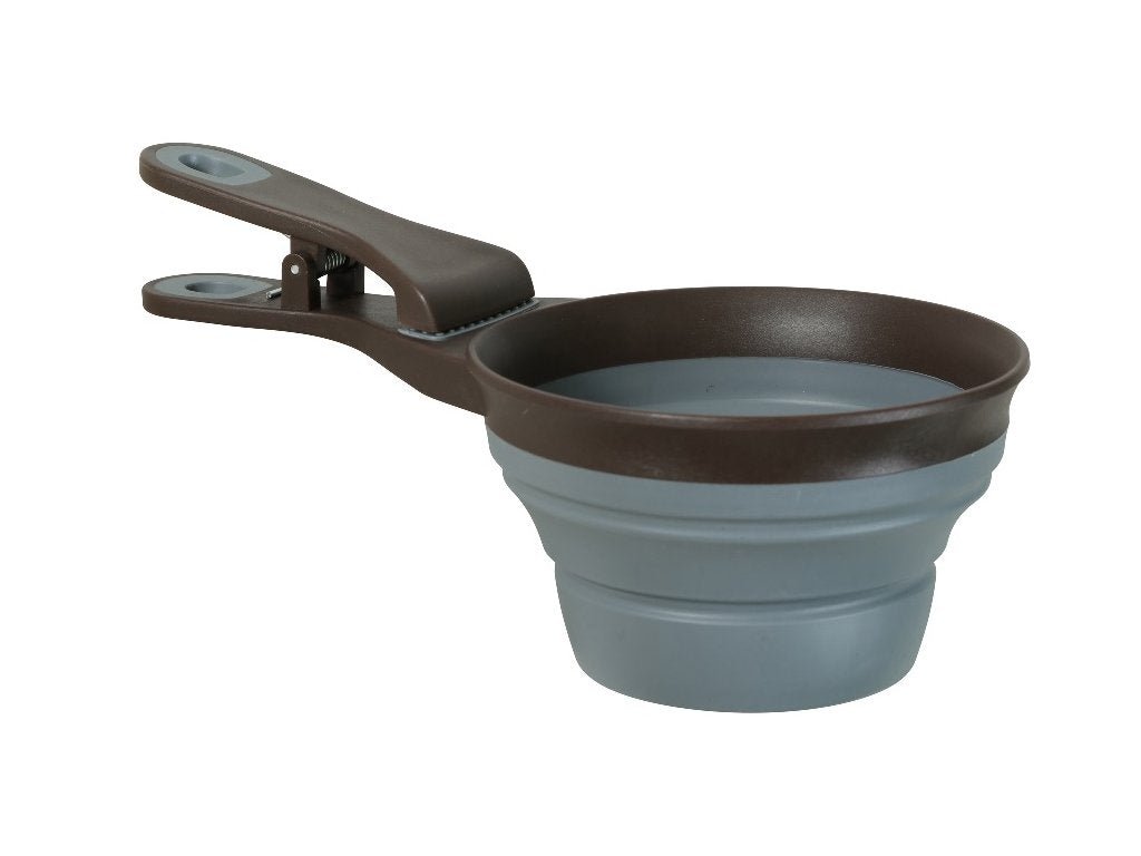 Odměrka na krmivo SILICONE s klipem, šedá M – Kompaktní a odolná odměrka, která je ideální pro domácnosti s více zvířaty, snadná údržba a praktické použití.