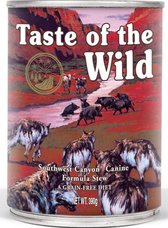Taste of the Wild konzerva Southwest Canyon 390 g je kompletní mokré krmivo pro psy všech plemen, které díky vysokému podílu masa a vyváženému složení podporuje zdraví a vitalitu vašeho mazlíčka.