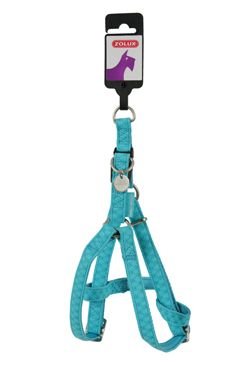 Postroj v tyrkysové barvě o šířce 20 mm je vhodný pro střední psy, s odolnou konstrukcí.