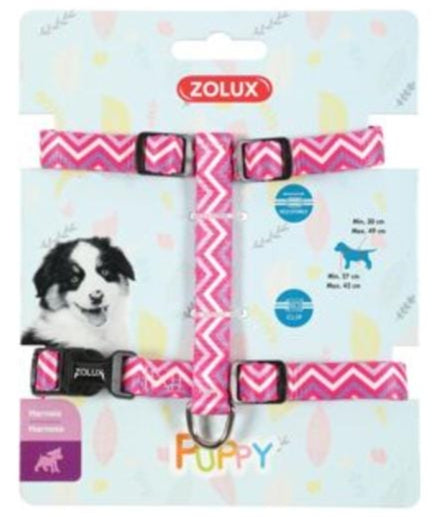 Růžový postroj pro štěňata šířky 13 mm je ideální volbou pro malé mazlíčky.