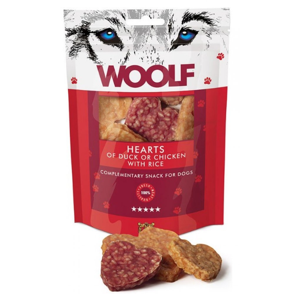 WOOLF pochoutka duck or chicken hearts with rice 100g