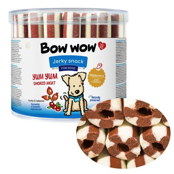 Bow Wow Yum Yum uzené maso 35 ks je určeno jako pochoutka pro dospělé psy všech plemen. Správné dávkování závisí na hmotnosti a aktivitě vašeho psa.