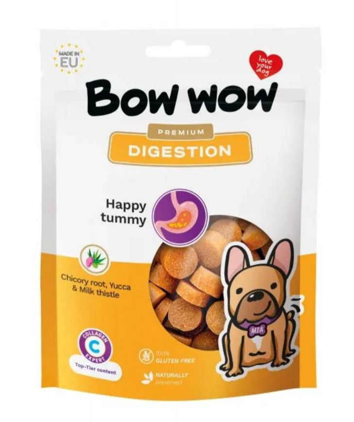 Bow wow poch. Digestion 60 g je určen jako funkční pamlsek pro podporu trávení u psů různých velikostí. Správné dávkování závisí na hmotnosti vašeho psa.
