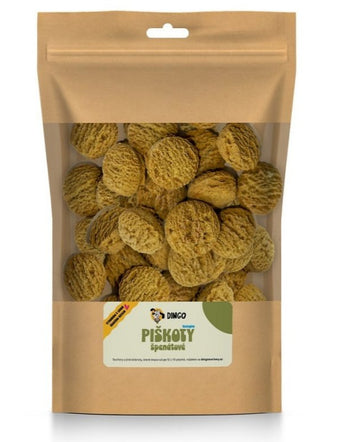 DINGO piškoty se špenátem bezlepkové 250g představují zdravou odměnu vhodnou pro psy s citlivým zažíváním i pro ty, kteří potřebují bezlepkovou alternativu. Kombinace cizrnové a jáhlové mouky, špenátu a vaječné melanže zajišťuje nutričně vyvážený pamlsek s příznivým vlivem na trávení, imunitu i vitalitu.