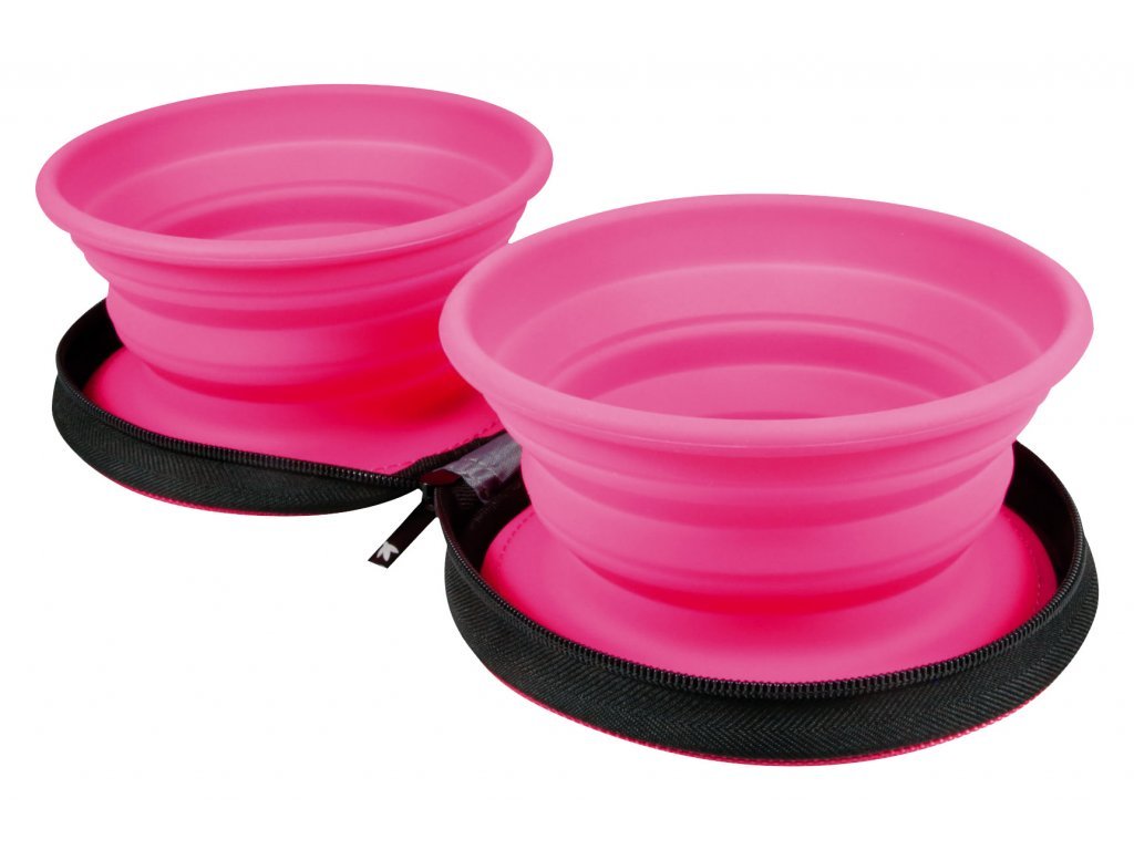 Růžová cestovní dvojmiska je ideální pro krmení a napájení vašeho mazlíčka na cestách. Je praktická, snadno se čistí a pohodlně se vejde do vašeho batohu nebo cestovní tašky.