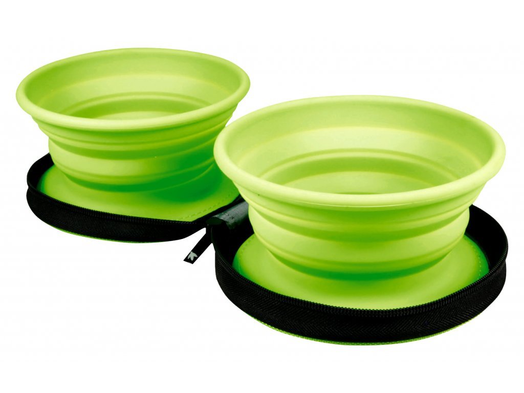 - Praktičnost na cestách: Dvě skládací misky z kvalitního silikonu, každá s objemem 350 ml, umožňují současné podávání jídla a vody, což je ideální při cestování nebo venkovních aktivitách.