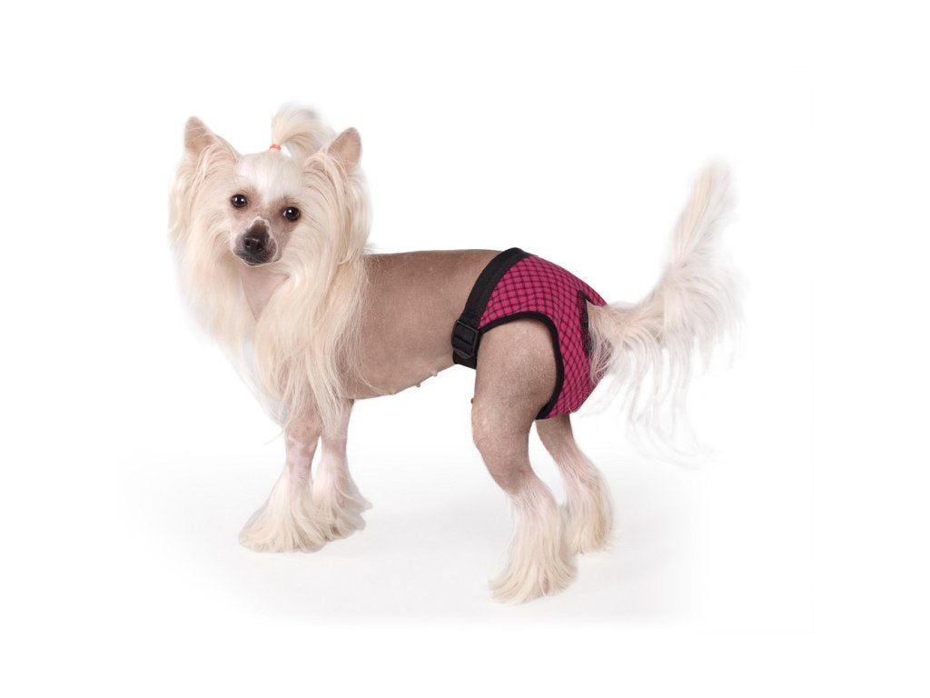 • Stabilní upevnění: Plastová spona a otvor pro ocas umožňují správné usazení na těle, takže kalhotky drží na místě i při běžném pohybu psa.