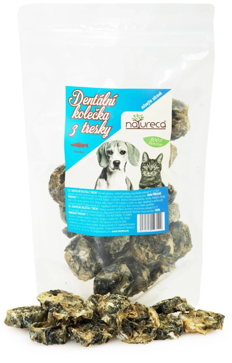 NATURECA pochoutka Dentální kolečka z tresky 70g je výbornou volbou pro podporu zdraví zubů vašeho mazlíčka a zároveň poskytuje hodnotné živiny z rybího masa. Tento produkt je obzvláště vhodný pro psy, kteří potřebují nejen chutnou odměnu, ale i dentální péči.