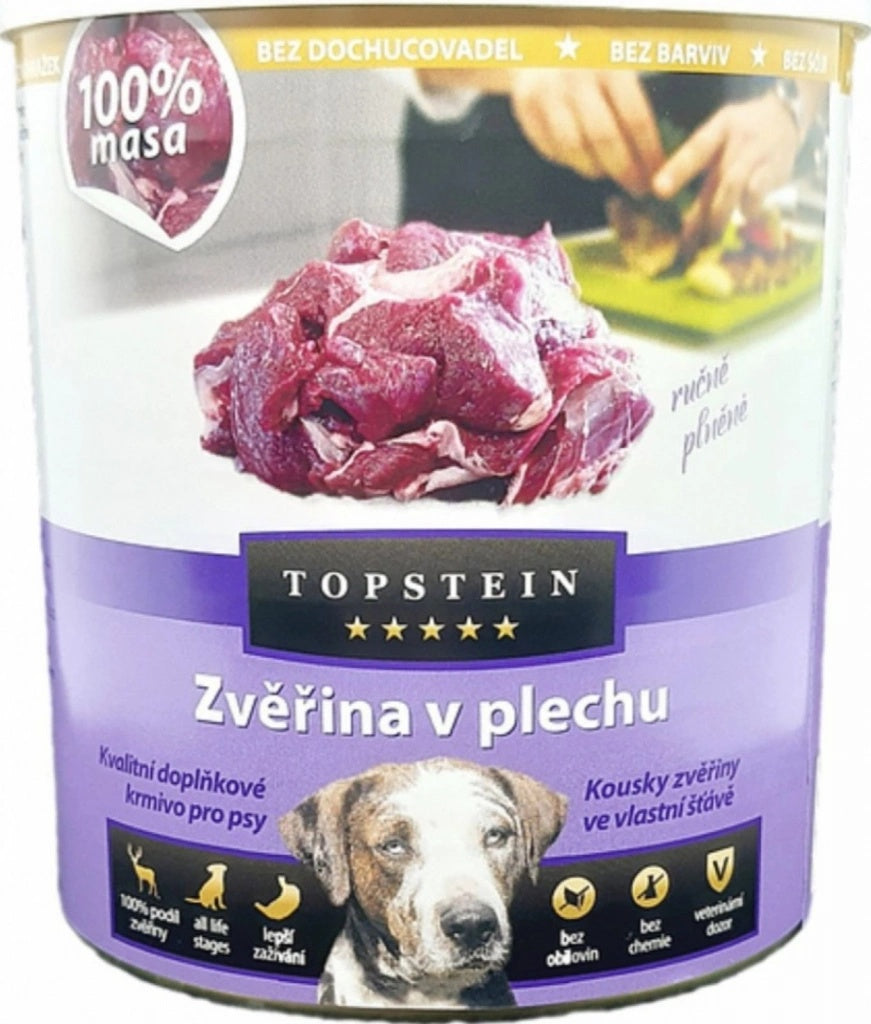 Topstein Zvěřina v plechu, 800 g, konzerva se zvěřinou pro psy.