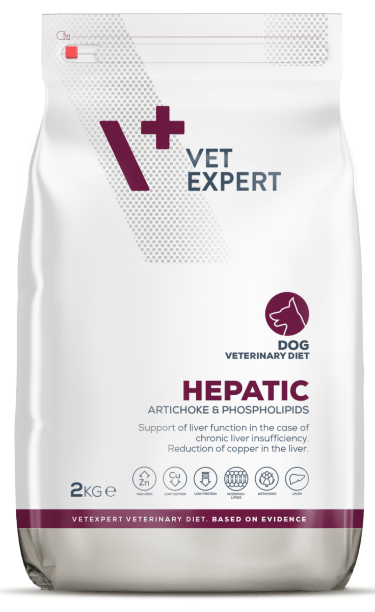 VetExpert VD 4T Hepatic Dog 2kg je veterinární dieta určená pro psy s onemocněním jater. Je navržena tak, aby odlehčila funkci jater, podpořila jejich regeneraci a zajistila optimální výživu bez zatížení metabolismu. Obsahuje pečlivě vybrané složky s nižším obsahem bílkovin, upraveným poměrem tuků a sacharidů a doplněné o látky s hepatoprotektivními účinky.